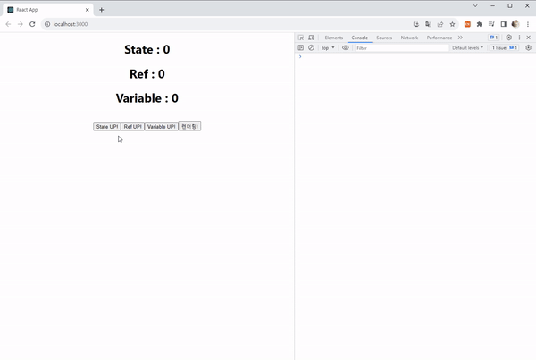 이번에는 useState, useRef, Variable 3개를 비교해보도록 하겠습니다.